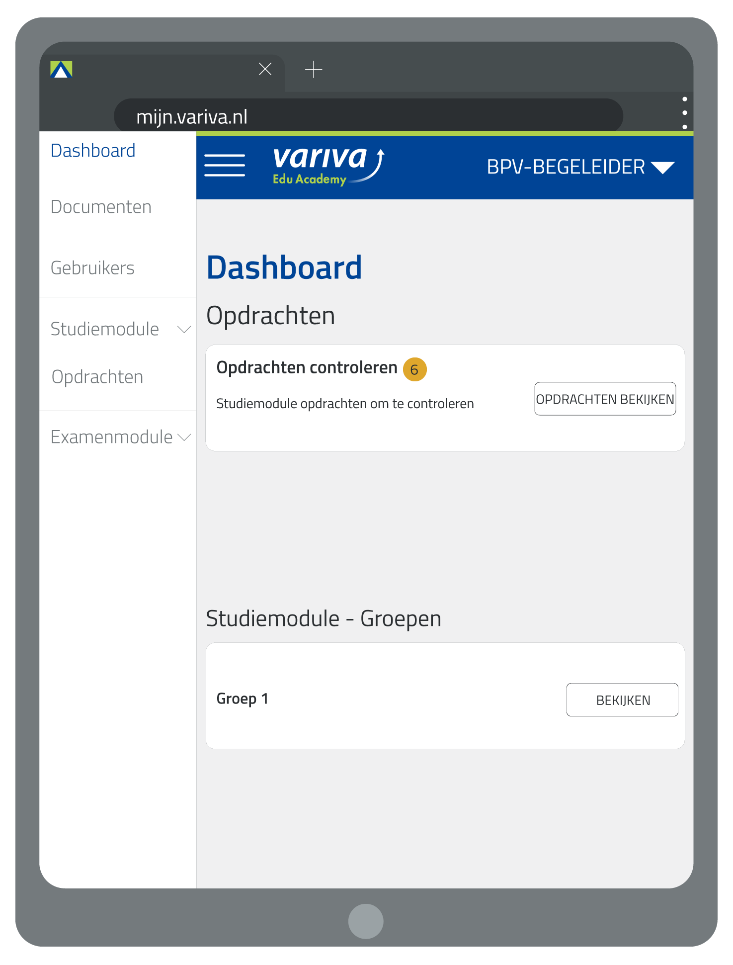 Ook examinatoren werken via Mijn Variva in de examenmodule. Deze staat los van de module waarin de docent en BPV-begeleider werken.